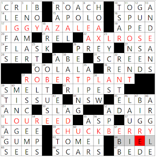 The themers for this tour are all musicians whose last names refer to plants in one way or another. CAVEAT: I don't like to RAP constructors, but a couple of these numbers may not be your idea of SOUL music.