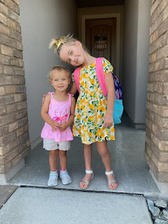 Here's a cute picture of Melissa's granddaughter Jaelyn on her first day of the kindergarten. She's with her sister Harper. Melissa says "She was disappointed that she couldn't read after the first day. "See all those signs? I can't read any of them!"